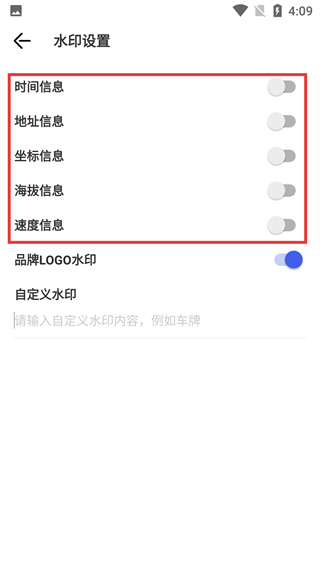 4、在水印設置界面,關閉【時間信息】、【地址信息】等不需要的水印項,僅保留必要的水印內容,簡化記錄信息。