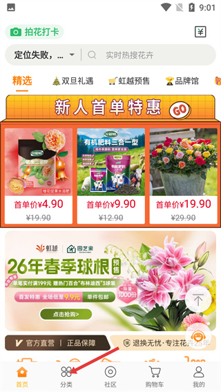 4、設(shè)置清晰分類購物專區(qū),首頁實時更新鮮花促銷活動,支持快速檢索所需花卉品類簡化選購流程步驟。