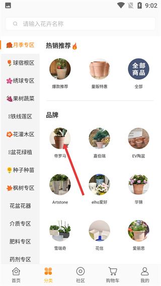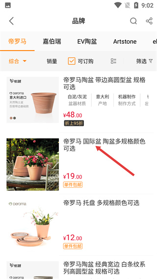 2、進入分類頁面后,點擊【帝羅馬】品牌選項,可進入該品牌商品列表頁,查看其相關(guān)的園藝用品。