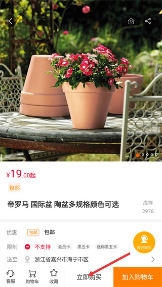 3、在【帝羅馬】品牌頁中,點擊【帝羅馬-國際盆-陶盆多規(guī)格顏色可選】商品,可進入該商品的詳情頁面。