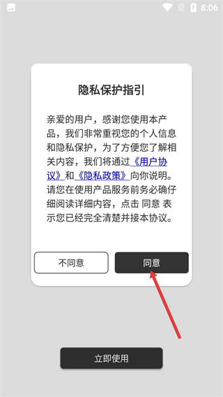 1、在隱私保護(hù)指引頁(yè)面,點(diǎn)擊【同意】按鈕,確認(rèn)《用戶(hù)協(xié)議》與《隱私政策》,進(jìn)入酷記事應(yīng)用主界面。