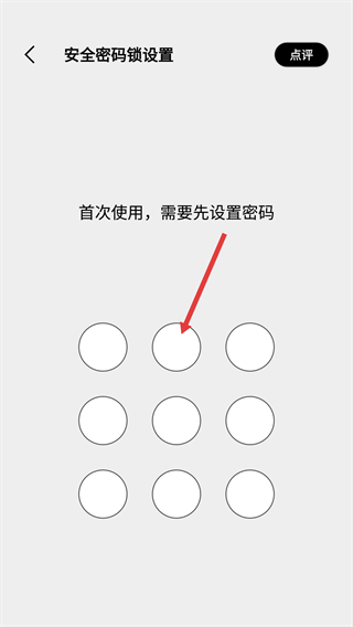 4、在安全密碼鎖設(shè)置頁(yè)面,按照“首次使用需先設(shè)置密碼”的提示,完成密碼的設(shè)置操作,配置應(yīng)用的密碼安全保護(hù)。