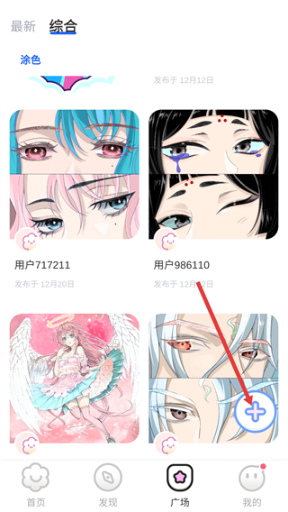 1、在【廣場】頁面,點(diǎn)擊作品區(qū)域的加號按鈕,進(jìn)入【發(fā)布作品】的引導(dǎo)頁面。