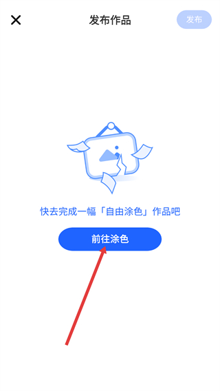 2、進(jìn)入【發(fā)布作品】頁面后,點(diǎn)擊【前往涂色】按鈕,進(jìn)入【自由涂色】的模板選擇頁面。