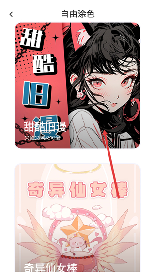 3、在【自由涂色】頁面,選擇【甜酷舊漫】模板,進(jìn)入該模板的涂色操作界面。