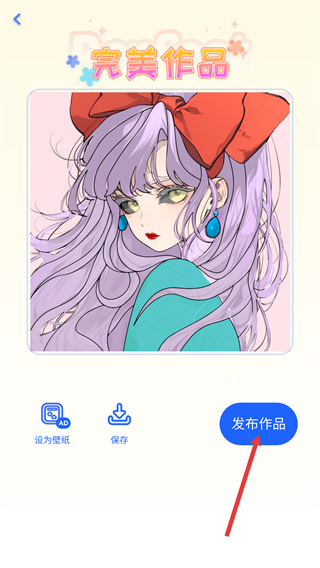 4、完成涂色后進(jìn)入【完美作品】頁面,點(diǎn)擊【發(fā)布作品】按鈕,完成該涂色作品的發(fā)布。