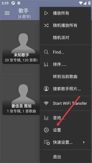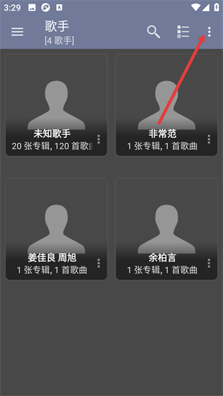 1、進(jìn)入歌手頁(yè)面,點(diǎn)擊界面右上角三點(diǎn)圖標(biāo),打開功能菜單。
