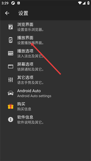 3、進(jìn)入設(shè)置界面后,選擇【播放界面】進(jìn)入對(duì)應(yīng)的設(shè)置頁(yè)面。