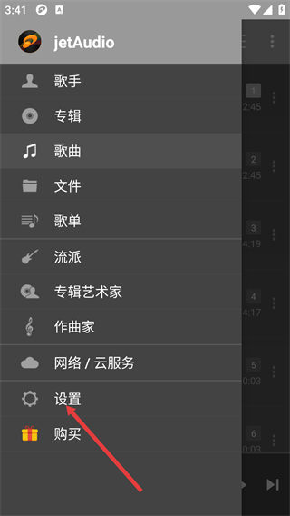 2、在側(cè)邊功能欄中,選擇【設(shè)置】選項,進(jìn)入應(yīng)用的設(shè)置頁面。