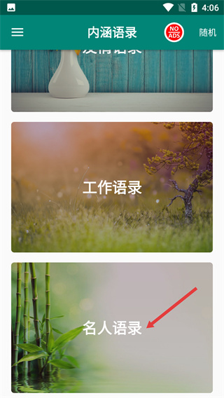 2、滑動(dòng)頁(yè)面加載更多分類,找到【名人語(yǔ)錄】板塊并點(diǎn)擊,進(jìn)入名人語(yǔ)錄的列表展示頁(yè)面。