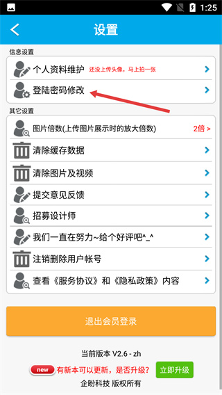 3、在設(shè)置頁(yè)面,選擇“登陸密碼修改”選項(xiàng),進(jìn)入對(duì)應(yīng)密碼修改的編輯頁(yè)面,準(zhǔn)備進(jìn)行密碼調(diào)整操作。