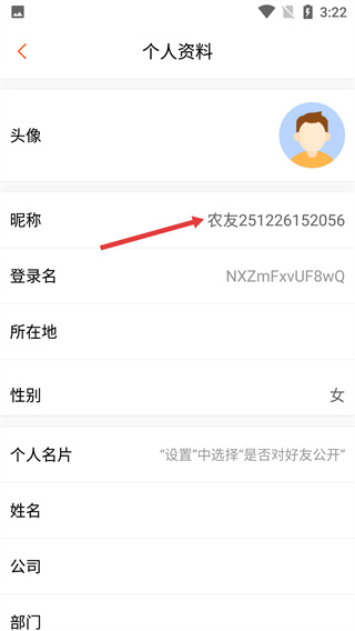 3、在個人資料頁面,點(diǎn)擊昵稱選項(xiàng),進(jìn)入用于修改昵稱的編輯頁面。