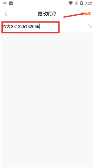 4、在更改昵稱頁面,輸入新昵稱內(nèi)容后,點(diǎn)擊右上角的【確定】按鈕,完成昵稱的修改操作。