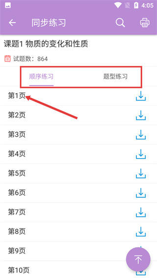 3、在同步練習(xí)頁(yè)面,選定練習(xí)模式,點(diǎn)擊對(duì)應(yīng)練習(xí)頁(yè)碼,進(jìn)入具體的習(xí)題練習(xí)頁(yè)面。