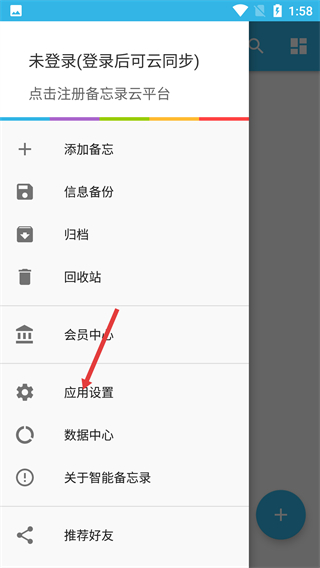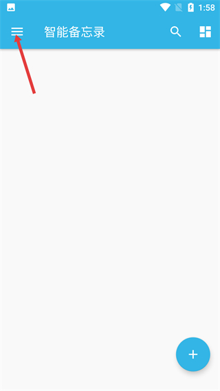 1、在【智能備忘錄】主界面,點擊左上角菜單按鈕,展開功能側(cè)邊欄,可查看添加備忘等功能選項。