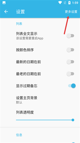 3、在【設置】頁面,點擊右上角【更多設置】按鈕,進入更詳細的功能配置界面。