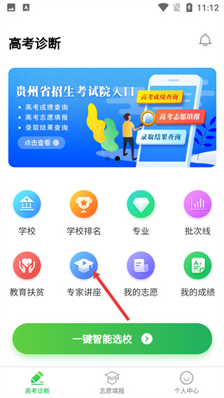 2、登錄后進(jìn)入【高考診斷】頁面,找到功能欄中的【專家講座】選項(xiàng)并點(diǎn)擊,進(jìn)入講座視頻列表界面。