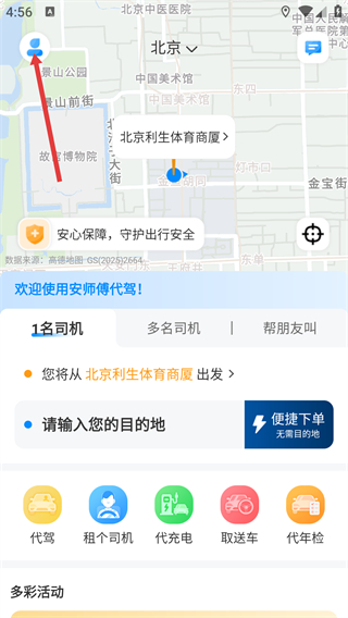 1、打開(kāi)代駕類軟件主界面,點(diǎn)擊左上角的個(gè)人中心按鈕。