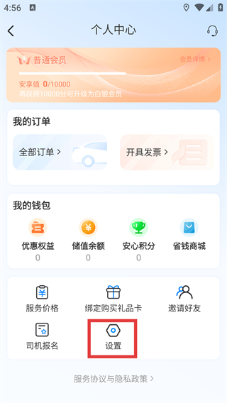 2、進(jìn)入【個(gè)人中心】界面,在功能列表中找到【設(shè)置】選項(xiàng),點(diǎn)擊進(jìn)入對(duì)應(yīng)的配置頁(yè)面。