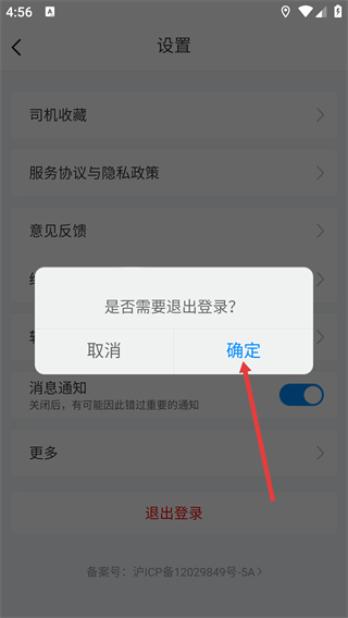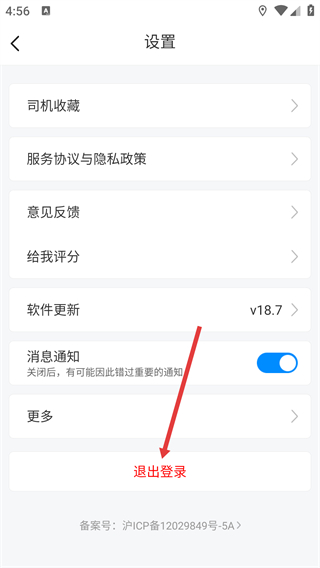 3、在【設(shè)置】界面,可管理【司機(jī)收藏】【消息通知】等選項(xiàng),找到底部的【退出登錄】按鈕,點(diǎn)擊即可觸發(fā)登錄退出的確認(rèn)流程。