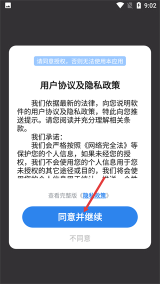 1、打開應(yīng)用后,在彈出的【用戶協(xié)議及隱私政策】彈窗中,點(diǎn)擊【同意并繼續(xù)】按鈕,進(jìn)入七點(diǎn)工具箱主界面。