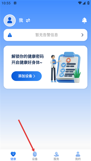 2、在“我”的頁(yè)面中,點(diǎn)擊底部導(dǎo)航欄的“設(shè)備”選項(xiàng),進(jìn)入設(shè)備相關(guān)的管理界面。