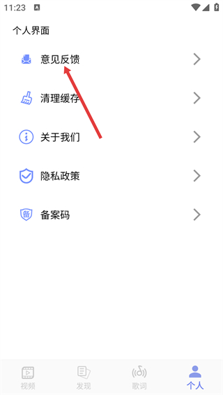 2、進入【個人界面】,可選擇【意見反饋】功能提交建議,同時也能操作【清理緩存】等基礎(chǔ)設(shè)置項。