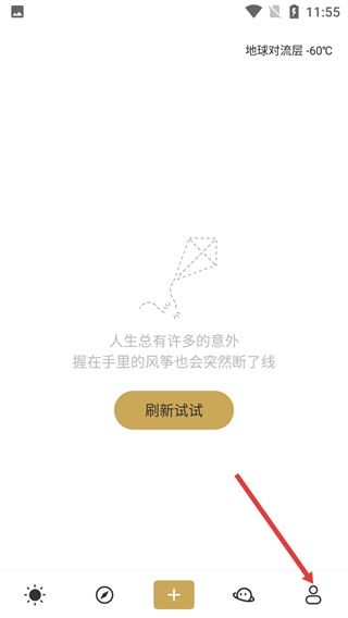 1、遇到頁(yè)面加載提示時(shí),可點(diǎn)擊【刷新試試】按鈕重試,之后點(diǎn)擊底部導(dǎo)航欄對(duì)應(yīng)按鈕,進(jìn)入個(gè)人相關(guān)功能界面。