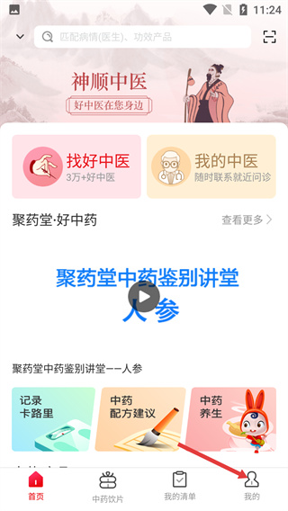 1、進(jìn)入神順中醫(yī)APP首頁,點(diǎn)擊底部“我的”選項(xiàng),進(jìn)入賬號相關(guān)的操作頁面。