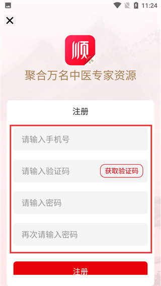 3、在注冊頁面,依次填寫手機(jī)號、獲取并填寫驗(yàn)證碼、設(shè)置密碼及重復(fù)密碼,完成注冊信息的錄入。