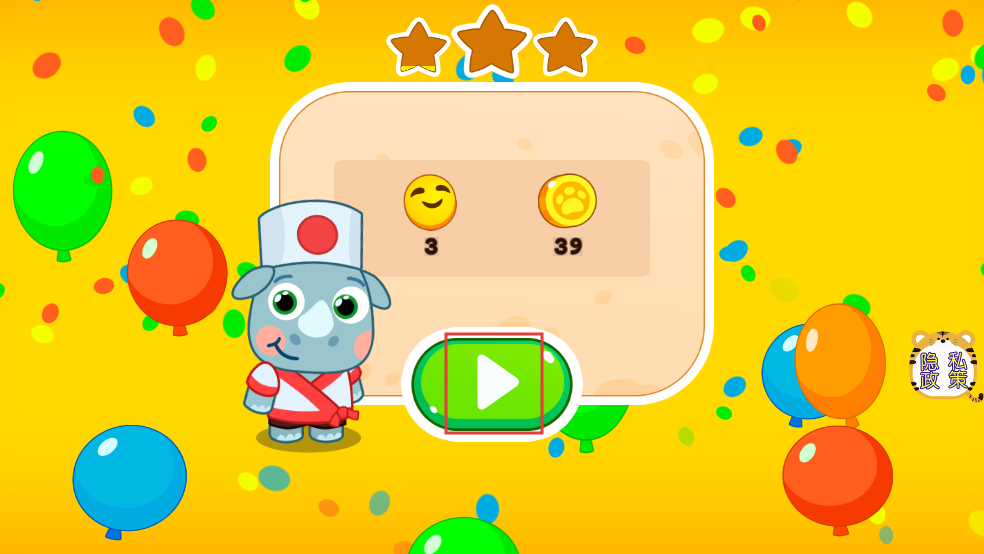 4、完成服務(wù)后,會(huì)獲得笑臉和金幣獎(jiǎng)勵(lì),此時(shí)點(diǎn)擊綠色播放按鈕,可繼續(xù)進(jìn)行下一輪的餐廳服務(wù)挑戰(zhàn)。