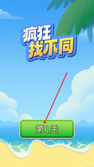 1、點擊【第1關】按鈕,進入“瘋狂找不同”第1關,準備開始尋找兩幅圖的差異。