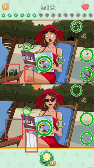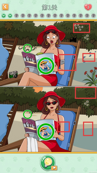 3、繼續(xù)排查畫面,包括物品、植物等細節(jié),找出所有不同點,提升找不同的效率和準確性。