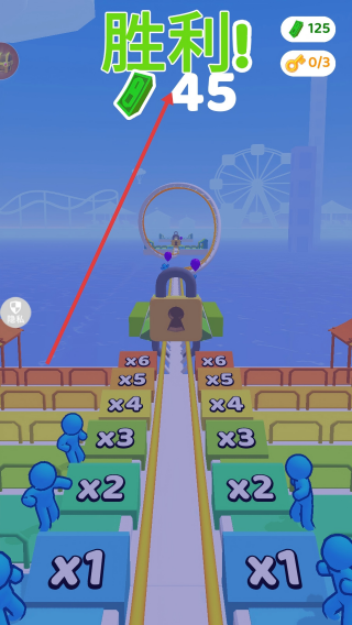4、成功到達(dá)終點(diǎn),顯示【勝利!】,獲得【45】獎(jiǎng)勵(lì),后續(xù)可挑戰(zhàn)帶倍數(shù)標(biāo)識(shí)的軌道,積累更多獎(jiǎng)勵(lì)。