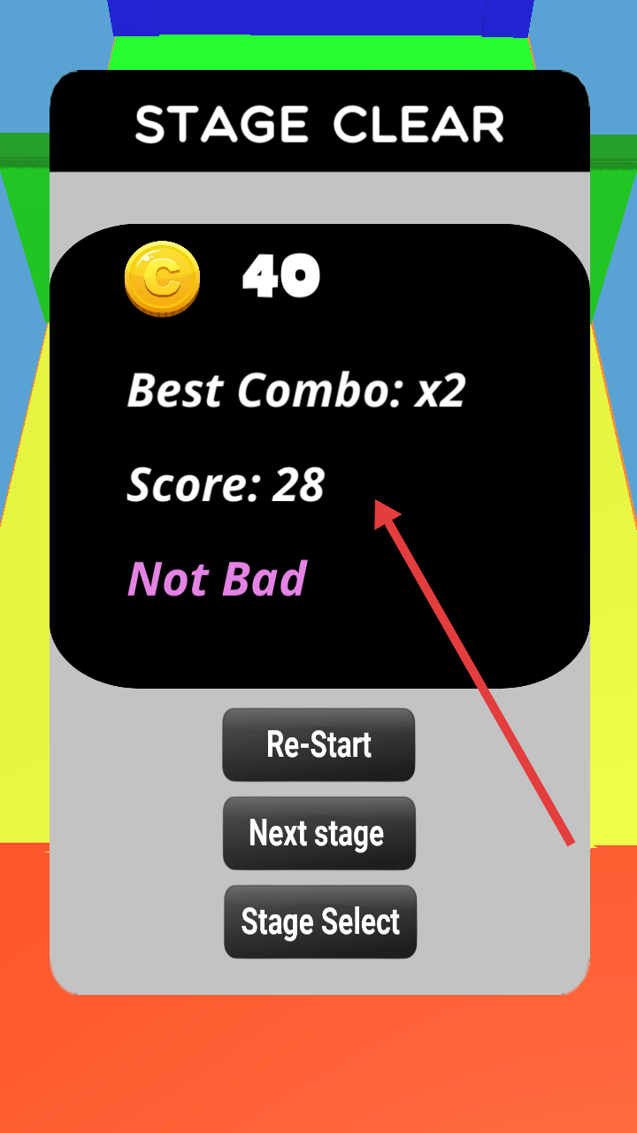 4、通關(guān)后界面顯示STAGECLEAR,獲得金幣、分?jǐn)?shù)獎(jiǎng)勵(lì),可選擇Nextstage,Re-Start或StageSelect。
