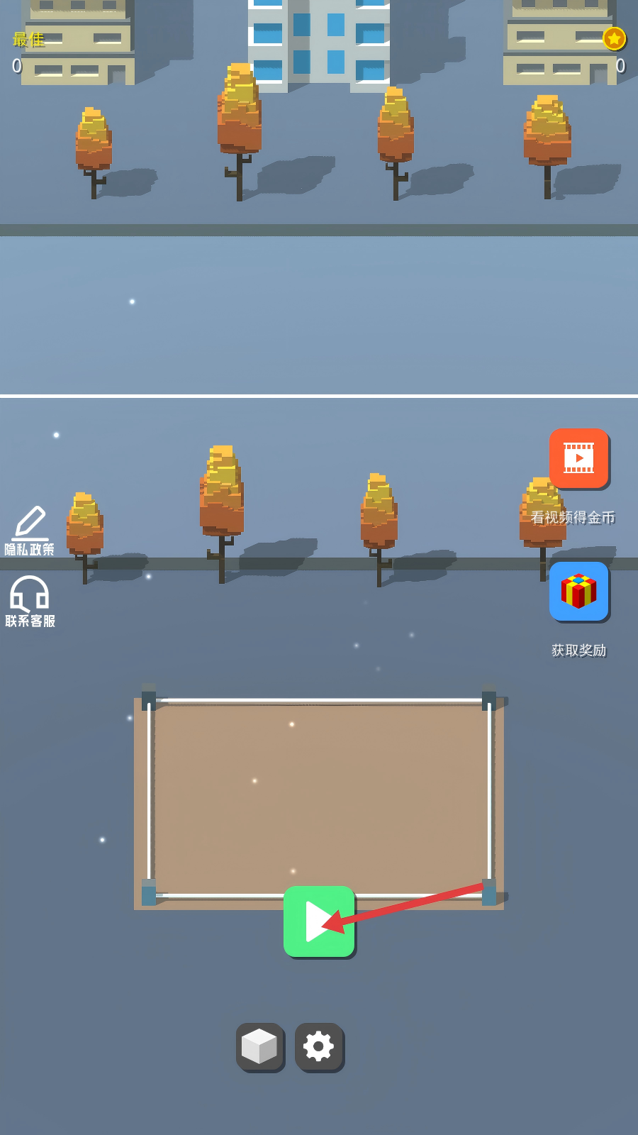 1、點擊界面中間綠色的開始按鈕,進入游戲,開啟堆疊建筑的挑戰(zhàn)之旅。