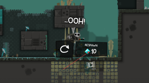 4、若角色失敗,可選擇消耗10個(gè)道具“RESPAWN”復(fù)活,繼續(xù)游戲,挑戰(zhàn)關(guān)卡目標(biāo)。
