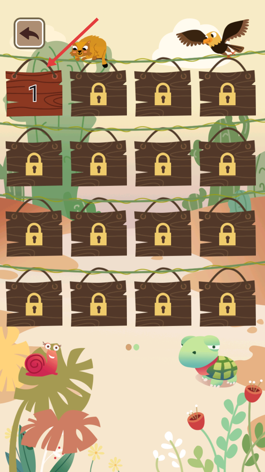 2、接著會看到關(guān)卡選擇界面,我們點(diǎn)擊第1關(guān),開啟第一關(guān)的挑戰(zhàn)吧。