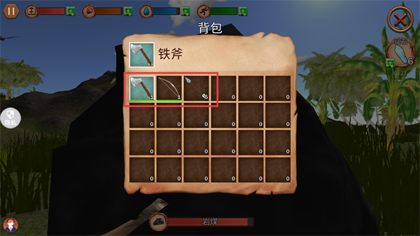 3、打開背包,可以選擇【鐵斧】、【弓箭】等工具,不同工具適用不同場景,選對工具能更高效冒險(xiǎn)哦。