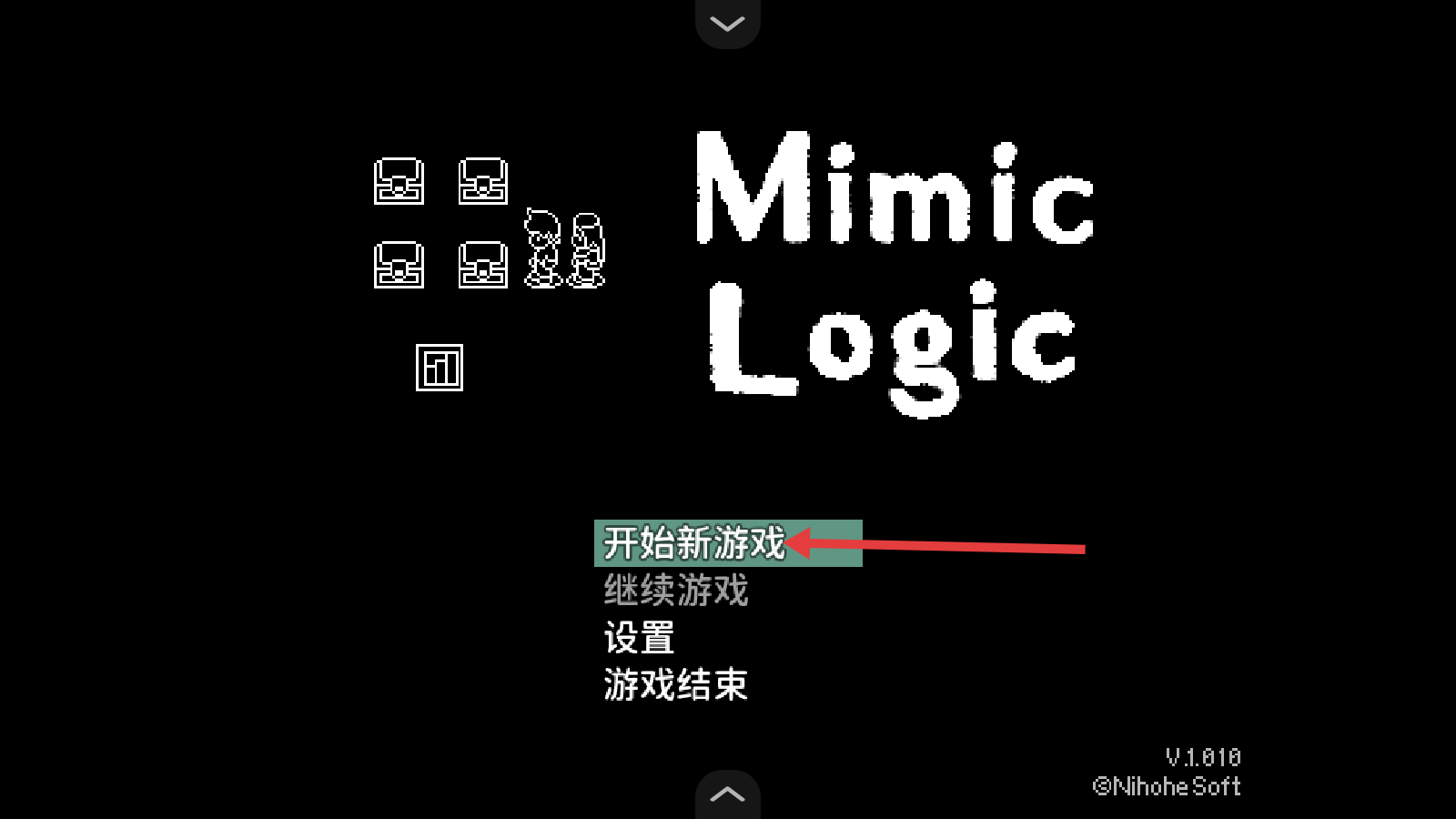 1、進(jìn)入游戲后,在主界面選擇【開(kāi)始新游戲】,開(kāi)啟【Mimic-Logic】的冒險(xiǎn)之旅,從基礎(chǔ)開(kāi)始探索。