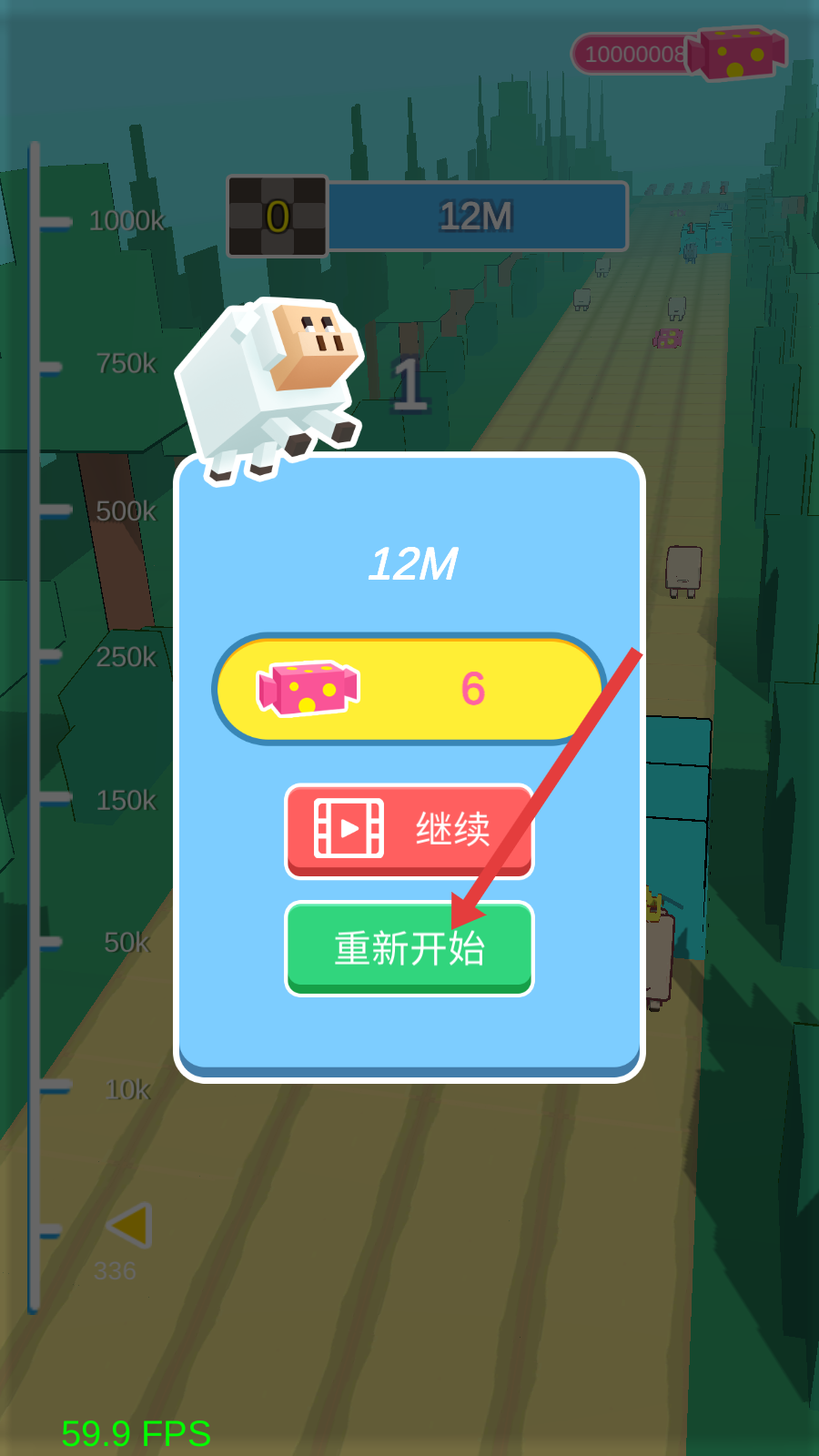 4、游戲失敗后,點擊【重新開始】,再次挑戰(zhàn)。