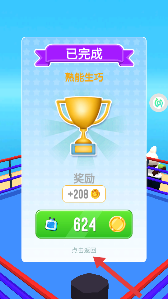4、贏得對(duì)戰(zhàn)出現(xiàn)【已完成】提示后,領(lǐng)取獎(jiǎng)勵(lì),點(diǎn)擊【點(diǎn)擊返回】按鈕回到相應(yīng)界面。