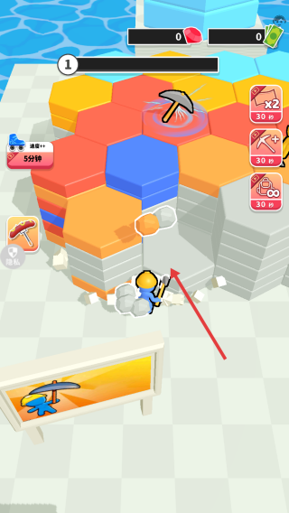 2、開采彩色方塊堆,不同顏色方塊可能有不同產出,持續(xù)開采能獲得資源,開采過程中注意方塊的破碎效果。