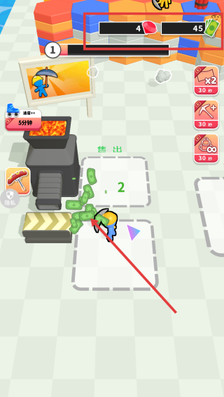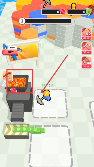 3、將開采得到的資源搬運到【售出】區(qū)域的機器處,把資源放入機器,進行資源轉換,為獲取金幣做準備。