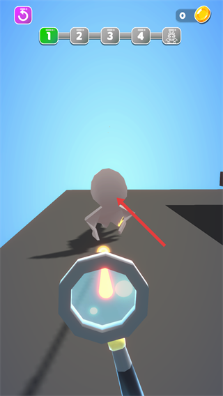 2、操控裝置發(fā)射光線,瞄準(zhǔn)前方的小人,讓光線命中目標(biāo),推進(jìn)游戲進(jìn)程。