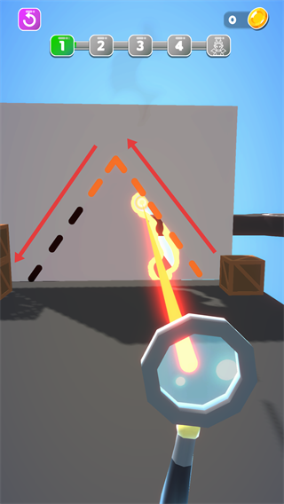 3、滑動(dòng)屏幕控制光線移動(dòng),按照虛線指示的路徑移動(dòng),讓光線通過障礙物,繼續(xù)前進(jìn)。