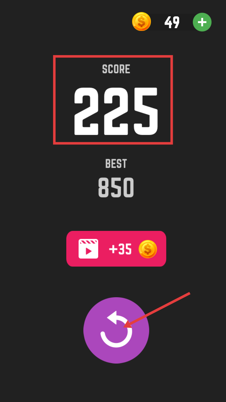 4、射擊結(jié)束后,查看結(jié)算界面的【SCORE】分?jǐn)?shù),點(diǎn)擊紫色重置按鈕,重新挑戰(zhàn)以沖擊更高分?jǐn)?shù)。