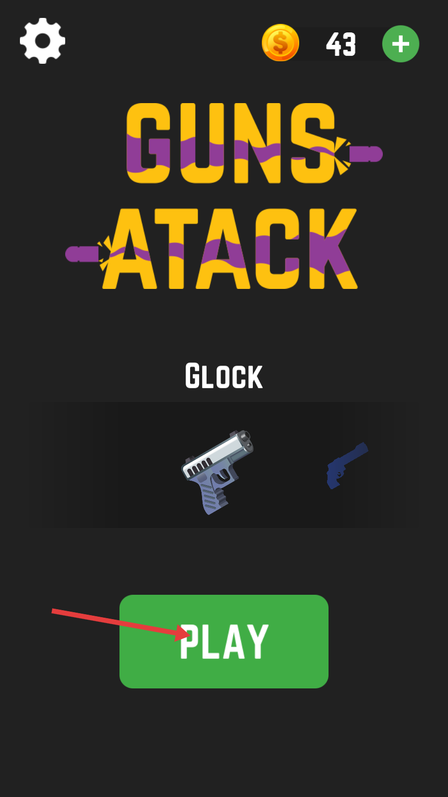 1、進(jìn)入【Guns-Attack】游戲,點(diǎn)擊綠色【PLAY】按鈕,選擇【Glock】槍械,開啟射擊挑戰(zhàn)。