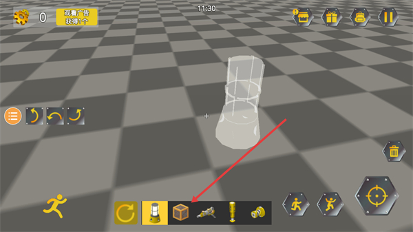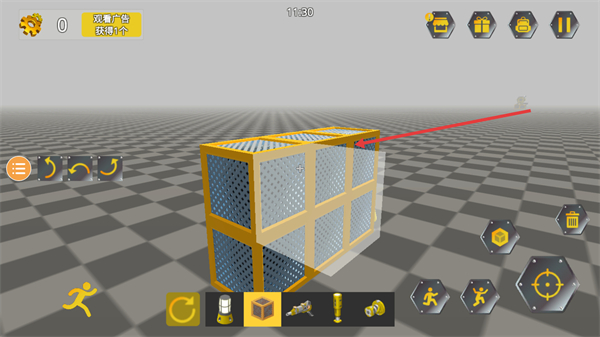 2、接著選取帶網(wǎng)格的方塊組件,拼接在已放置的方塊上,擴(kuò)展搭建物的形態(tài)。