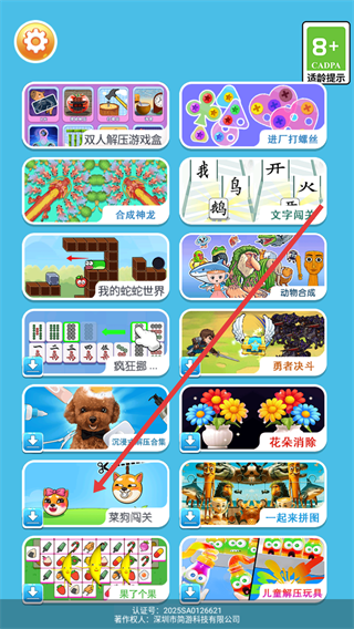 1、在游戲列表中,點(diǎn)擊【菜狗闖關(guān)】選項(xiàng),進(jìn)入該游戲的關(guān)卡選擇界面。